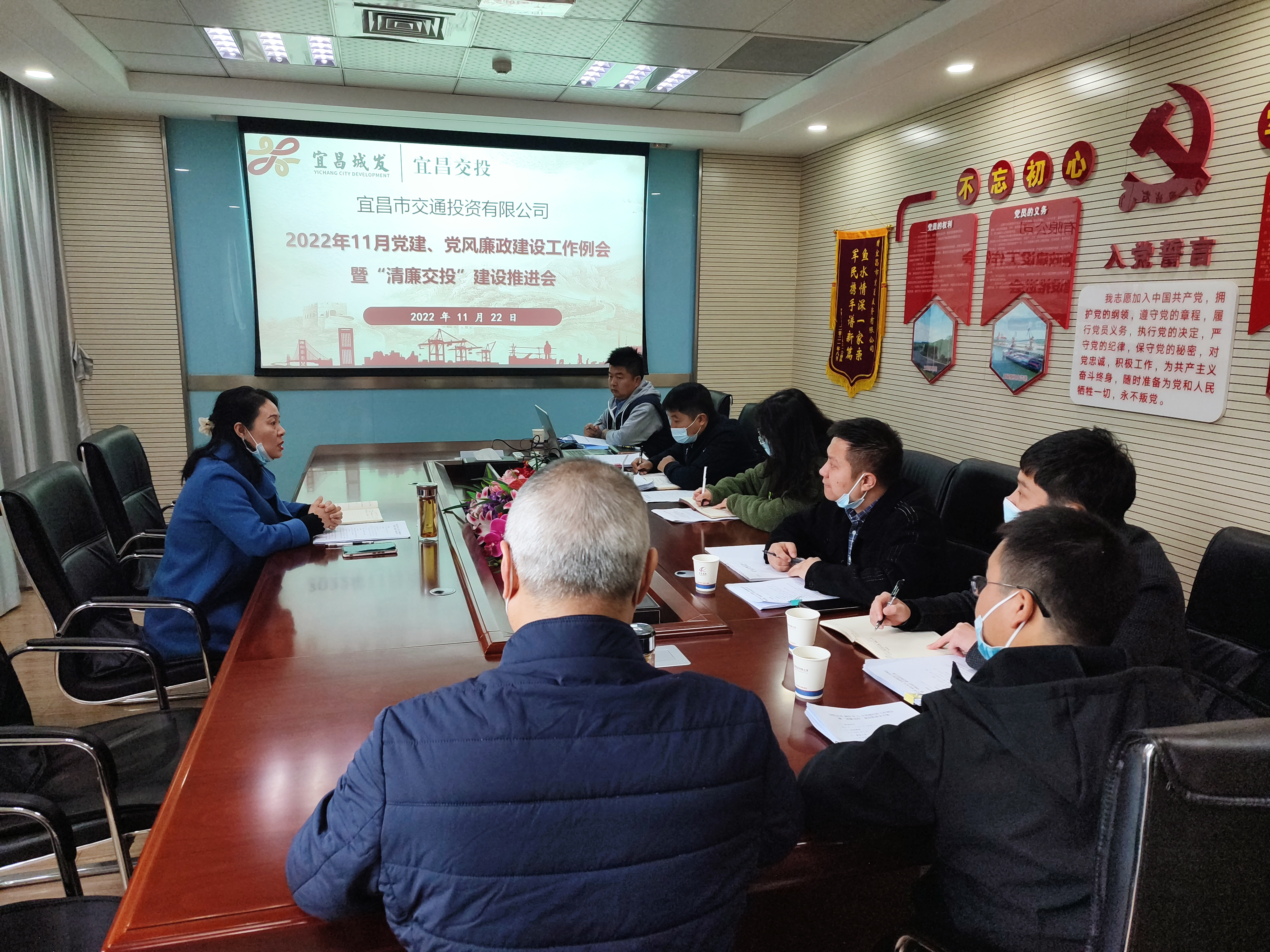 四、11月22日,交投公司組織召開黨建、黨風(fēng)廉政建設(shè)工作例會暨“清廉交投”建設(shè)推進(jìn)會,公司黨委委員、紀(jì)委書記黎毅主持會議,各基層黨支部書記(牽頭負(fù)責(zé)人)、紀(jì)檢委員及黨務(wù)工作者參加會議。會上深入學(xué)習(xí)黨的二十大精神、《中國共產(chǎn)黨紀(jì)律檢查委員會工作條例》、《紀(jì)檢監(jiān)察機(jī)關(guān)派駐機(jī)構(gòu)工作規(guī)則》以及政治生態(tài)分析研判相關(guān)工作方案及要求,并傳達(dá)了城發(fā)集團(tuán)專業(yè)化整合集中授牌儀式及城發(fā)投資集團(tuán)干部任職大會精神,對黨務(wù)紀(jì)檢工作人員進(jìn)行了專題培訓(xùn),重點(diǎn)圍繞近期印發(fā)的三個制度進(jìn)行學(xué)習(xí),安排部署近階段重點(diǎn)工作。當(dāng)天下午,湖北三峽現(xiàn)代物流有限公司、田家河鐵路項目指揮部分別對會議精神進(jìn)行了傳達(dá),進(jìn)一步凝聚了人心,鼓舞了士氣,壓實(shí)了責(zé)任。