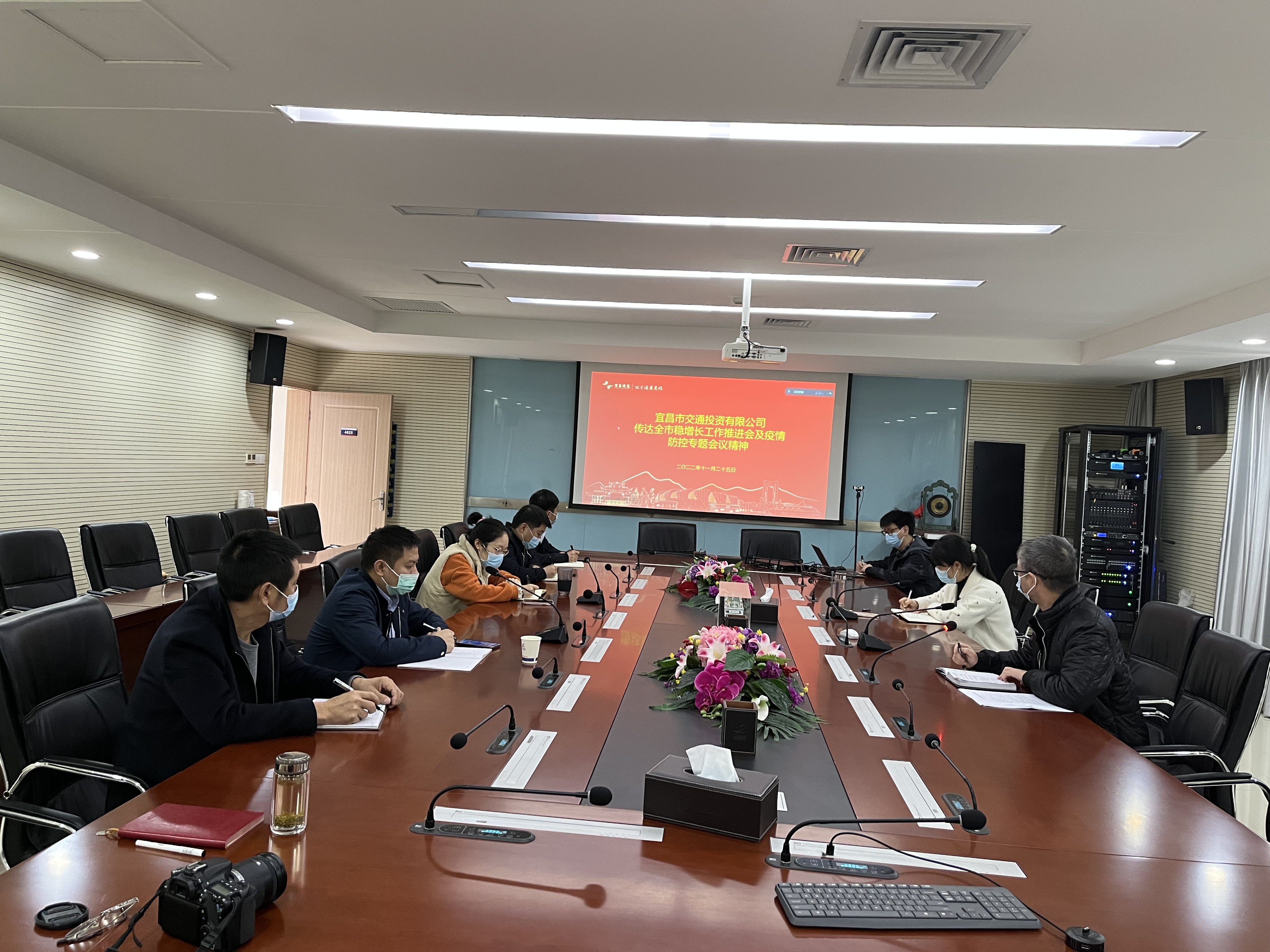 六、11月26日,交投公司召開專題會議(領(lǐng)導(dǎo)班子及部門主要負(fù)責(zé)人參加現(xiàn)場會,其他干部職工參加視頻會),集中傳達(dá)宜昌城發(fā)集團(tuán)穩(wěn)增長工作推進(jìn)會暨疫情防控專題會議精神,公司黨委副書記、執(zhí)行總經(jīng)理陳圣偉主持,并對季度項目拉練情況、全市疫情防控情況做了介紹,重點(diǎn)傳達(dá)了城發(fā)集團(tuán)黨委書記、董事長殷俊同志和黨委委員、紀(jì)委書記劉仁同志的講話精神。要求各項目負(fù)責(zé)人必須掌握現(xiàn)場情況,疫情要防住、經(jīng)濟(jì)要穩(wěn)住、安全要守住,做到心中有戒、手中有招、肩上有責(zé),發(fā)現(xiàn)問題要以快制快、果斷決策,要不辭辛勞、從嚴(yán)管控。在全國各地疫情散發(fā)狀態(tài)下,做到動態(tài)清零常態(tài)化、基層防疫陣地化、聯(lián)防聯(lián)控信息化、工作體系制度化。全體干部職工要打起十二分精神,打好防疫“總決戰(zhàn)”。公司紀(jì)委對7個方面內(nèi)容進(jìn)行了強(qiáng)調(diào)。會后,公司黨委委員、紀(jì)委書記黎毅對東艷路本部辦公場所進(jìn)出卡口、監(jiān)控室、食堂防疫措施落實(shí)情況和物資儲備情況進(jìn)行了檢查,并對不規(guī)范問題現(xiàn)場提出整改要求。